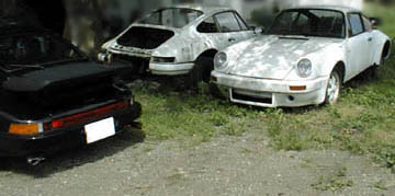 前もって聞いていた通りインターで高速を下り国道を走行、ガソリンスタンドで道を聞きました。ショップ名を聞いてもわからないようでしたが、「ポルシェの」と言うと「Bさんのうち」とすぐにわかりました。路地を曲がった先の家とのことなのでその通りに進むと911のフロント部分が見えました。