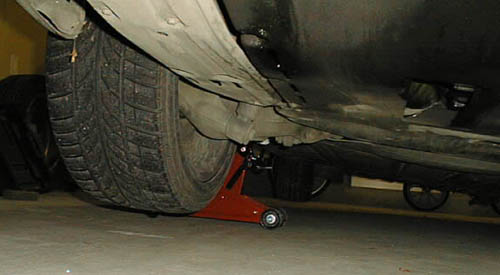 雪が積もるとヤバイのでタイヤも交換してしまいます。例によって後のポイントにジャッキを当てれば前も上がるのでジャッキアップは2回で済みます。
