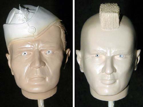 豪華な大理石ベース付きのシリーズだがキット自体はかなり昔からカタログにある古いもので、顔も少しアニメがかったような印象を受ける。空挺師団のモヒカンのトップはツルツルになっているが、このスケールで塗装だけで表現するのは厳しいのでケガキ針でザラザラにしておく。